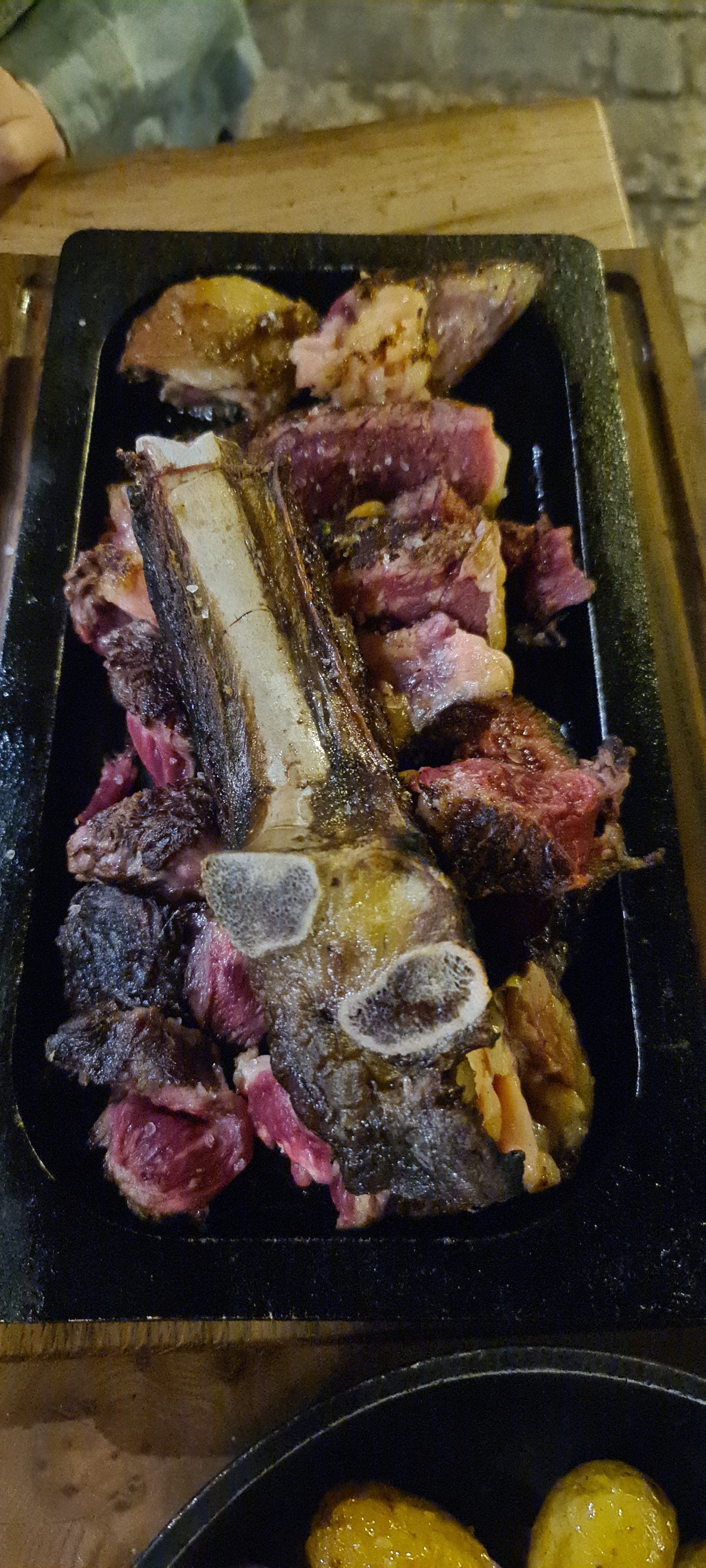 Posté le 07/09/2024 à 21:08"Rendez-vous en viandes inconnue Après 1H30 de route avec trois amis, exprès pour essayer ce fameux restaurant nous arrivons devant la magnifique statue de sanglier... Pas déçus ! Allez-y les yeux fermés car l'odeur de la formidable sélection de viandes maturées vous guidera droit vers une table de ce fabuleux repaire. D'excellents conseils pour la cave à vin (qui nous aura valu, par ailleurs, de commander deux autres bouteilles). La planche canaille est excellente, suivie du duo d'os à moelle 👌 rien à ajouter... Simplement parfait. Pour les viandes, nous avons opté pour une côte de Holstein et une de Galice d'1kg chacune. Pour les accompagnements on a fait simple: on les a tous pris. À part un dernier petit bout de viande, tout y est passé tant la qualité était présente. Celà ne nous à pas empêché de prendre également un dessert de chaque, eux aussi très bon. Si j'avais quelques chose à redire ce serait peut être sur l'ambiance générale (tenue sans doute trop sobre, fond musical potentiellement) mais nos coeurs (et nos estomacs) ont étés plus que ravis. Au plaisir de vous revoir 🥩🍷😘"