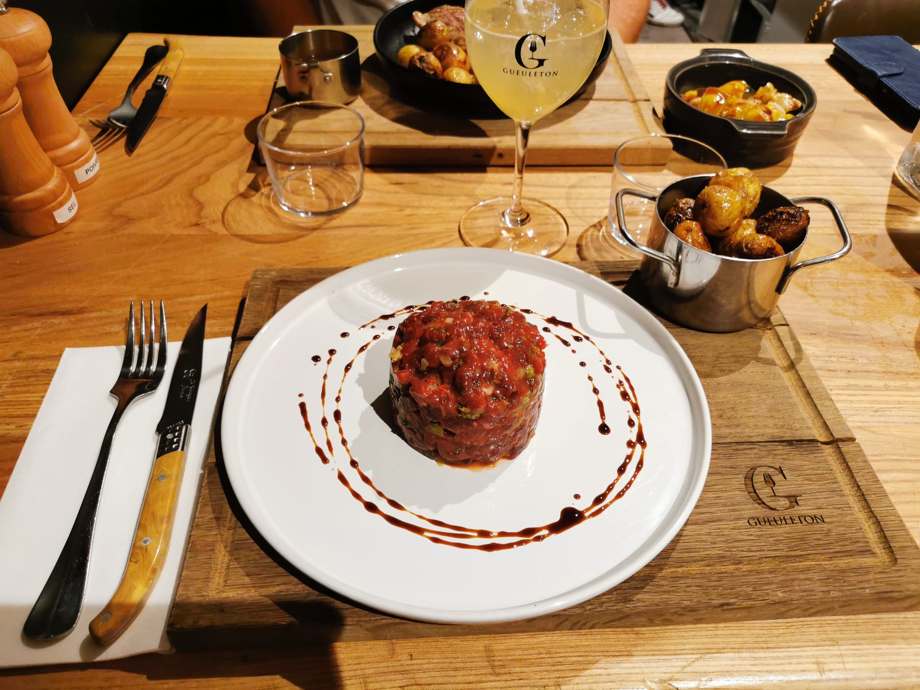 Diner ce soir pour 2. Première bonne première expérience chez Gueuleton, serveur aimable et ambiance vraiment adapté. Pour les plats cela à été un regal sauf un bémol, ayant commandé une viande saignante j'ai eu la malheureuse surprise de la recevoir bleu. Les couteaux ne coupent pas très correctement et c'est dommage. Le personnel dédié au service fût très reactif sur les 2 points cités plus haut. Changement rapide de couvert et le plat reparti en cuisine avec une portion de frites pour patienter. Le prix quant à lui vaut le coup. 170€ (Il faut compter 70€ pour une bouteille de vin que j'ai choisi et dont je n'en regrette rien). Une très bonne expérience que je recommande aux amateurs de viande.