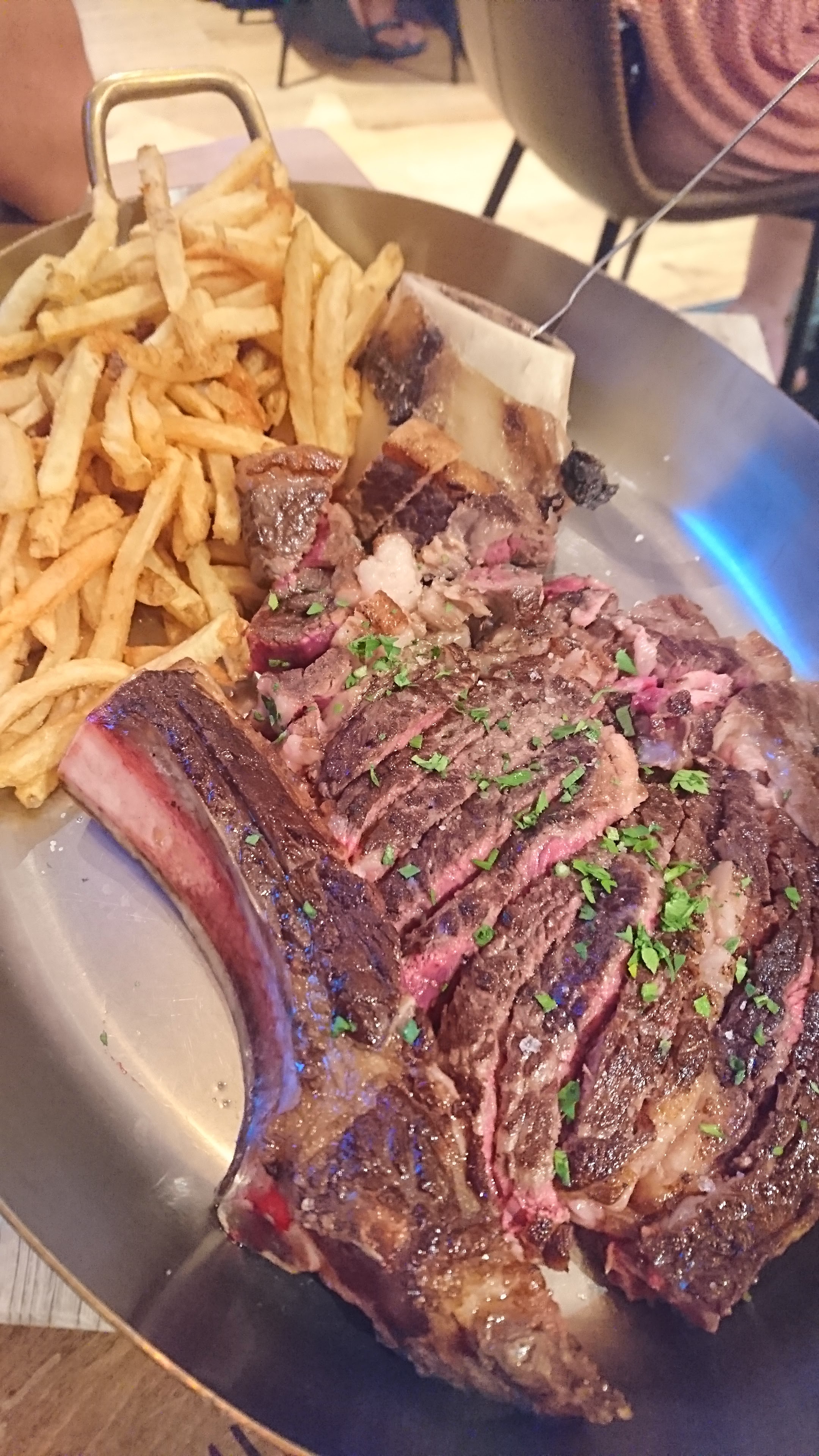 Posté le 19/06/2024 à 19:42"Cote de boeuf black angus maturée 30 jours, un délice, frites très bonnes, et vin bon rapport qualité-prix, une bonne expérience à refaire"