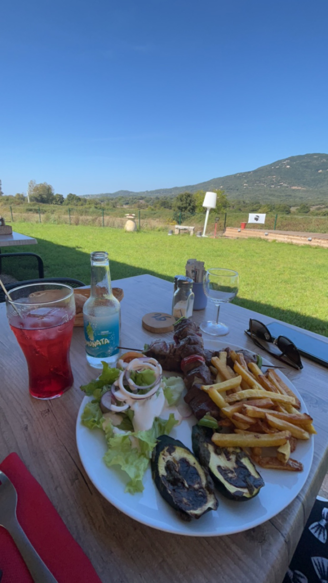 Posté le 11/05/2024 à 14:51"Lieu sympathique seul ou entre amis. Cadre très vert et belle vue sur le village d'olmeto. Niveau cuisine tout est local et bon."