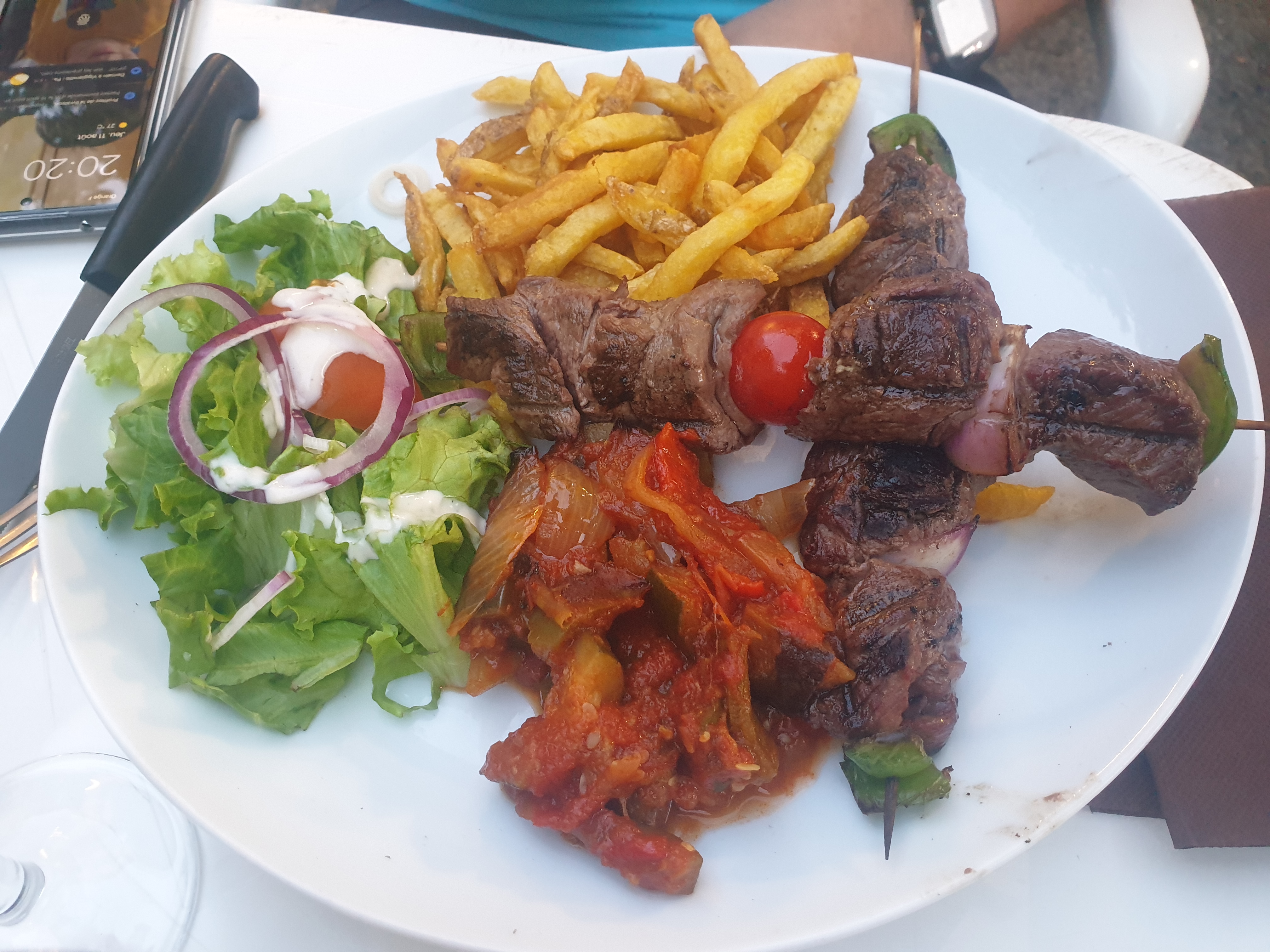 Posté le 16/08/2019 à 09:51"Nous avions envie de manger des merguez, ce petit restaurant doté d'une terrasse au frais, a répondu largement à notre demande ! Prix plus que correcte pour la quantité et la qualité c'était très bon !"