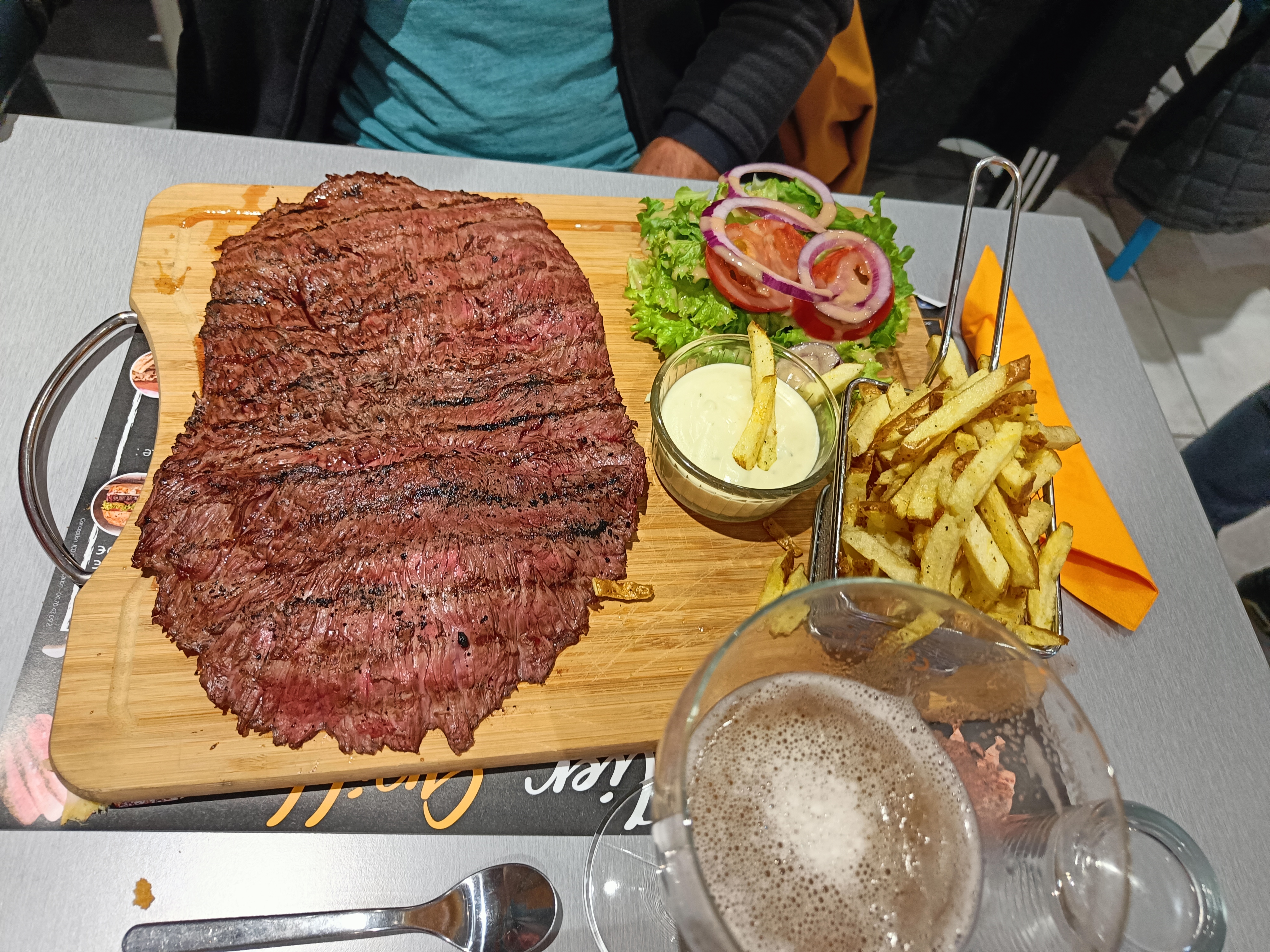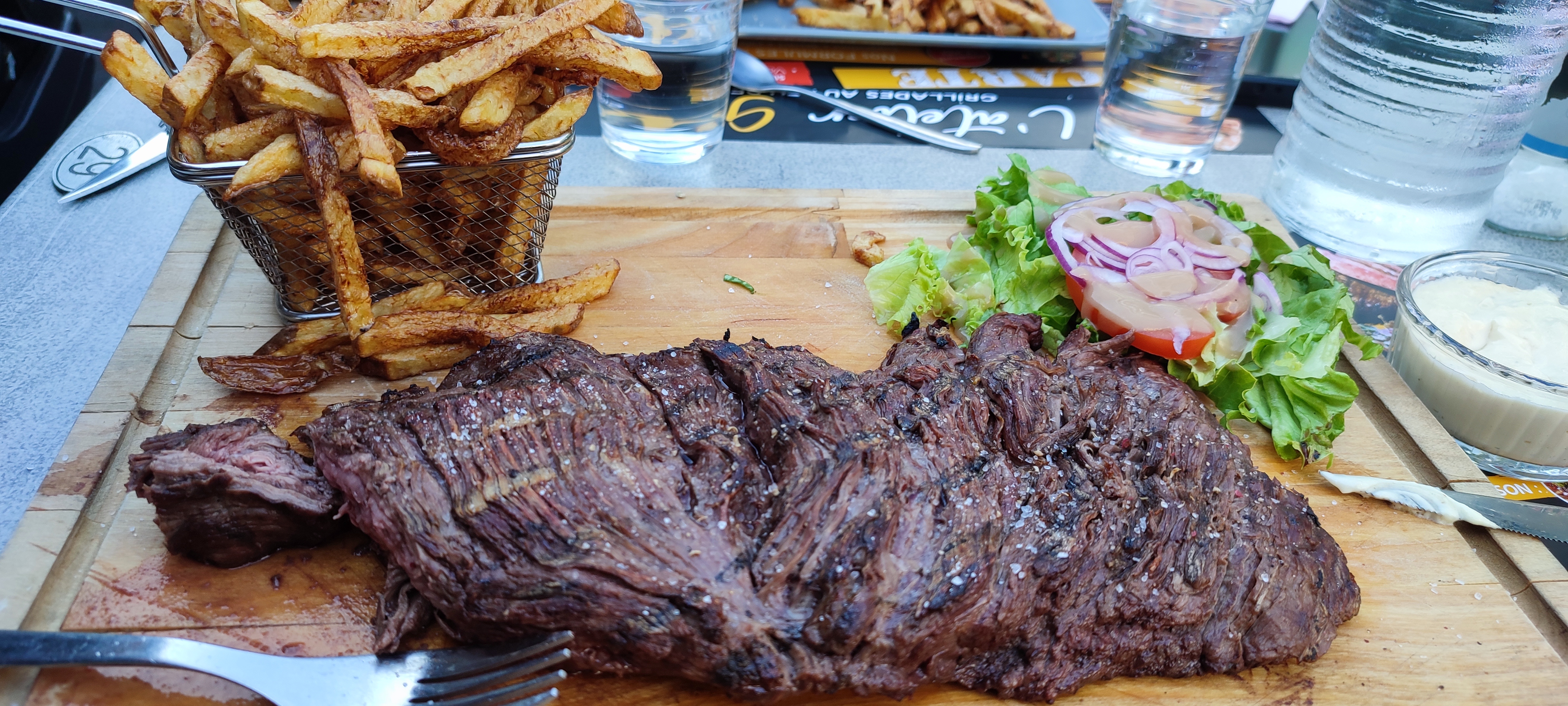 Posté le 27/10/2023 à 19:33"Accueil au Top, super conseil et une bavette de 800g audacieuse et excellente 😉 On en ressort repu. Qualité et quantité sont au rendez-vous."