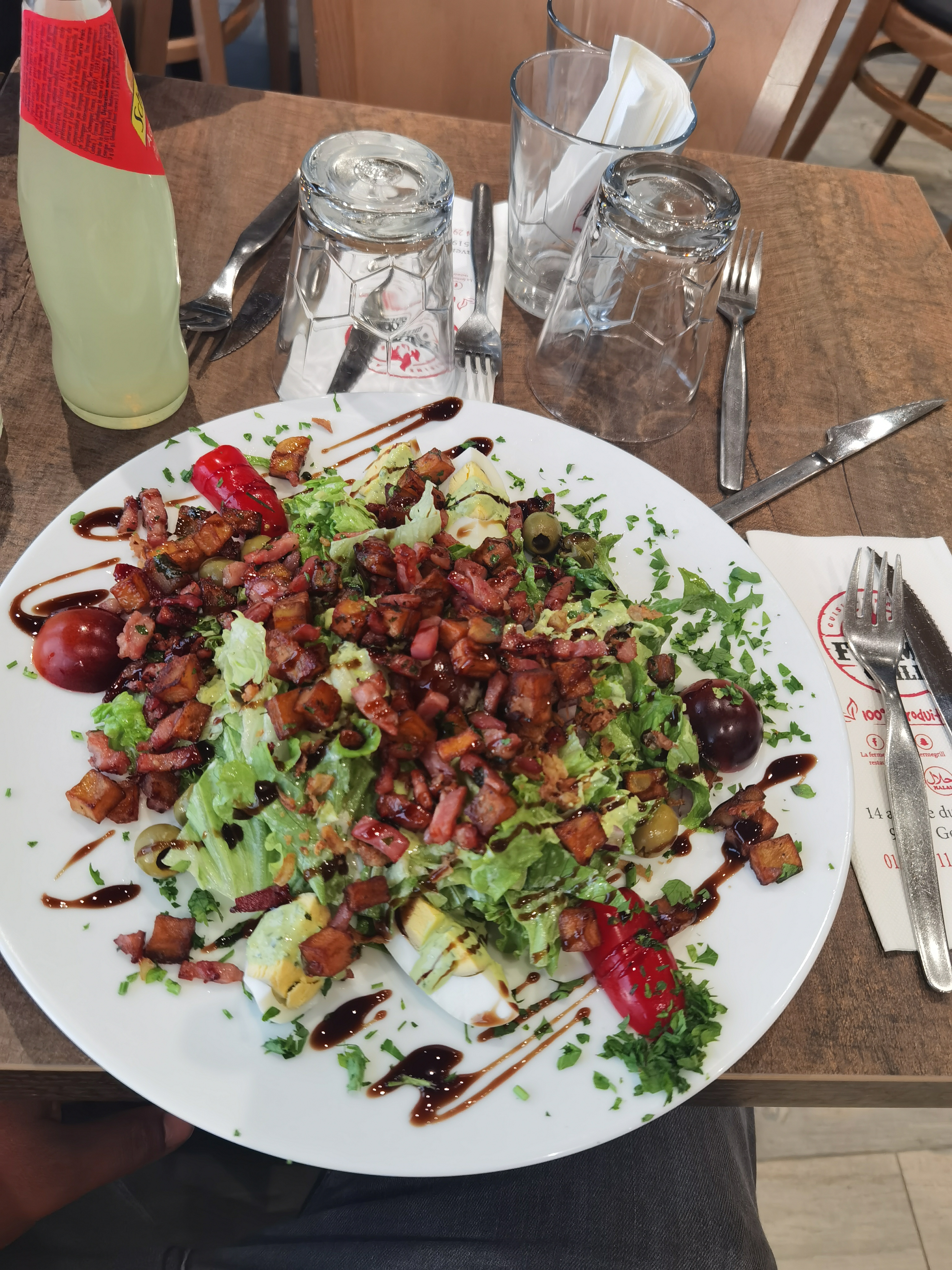 Posté le 24/03/2024 à 19:57"Franchement super bon, rien à dire. Je recommande vivement l'entrée la fermière incroyable. Salade, pomme de terre, lardon, œuf etc un combo digne d'un film de science fiction"