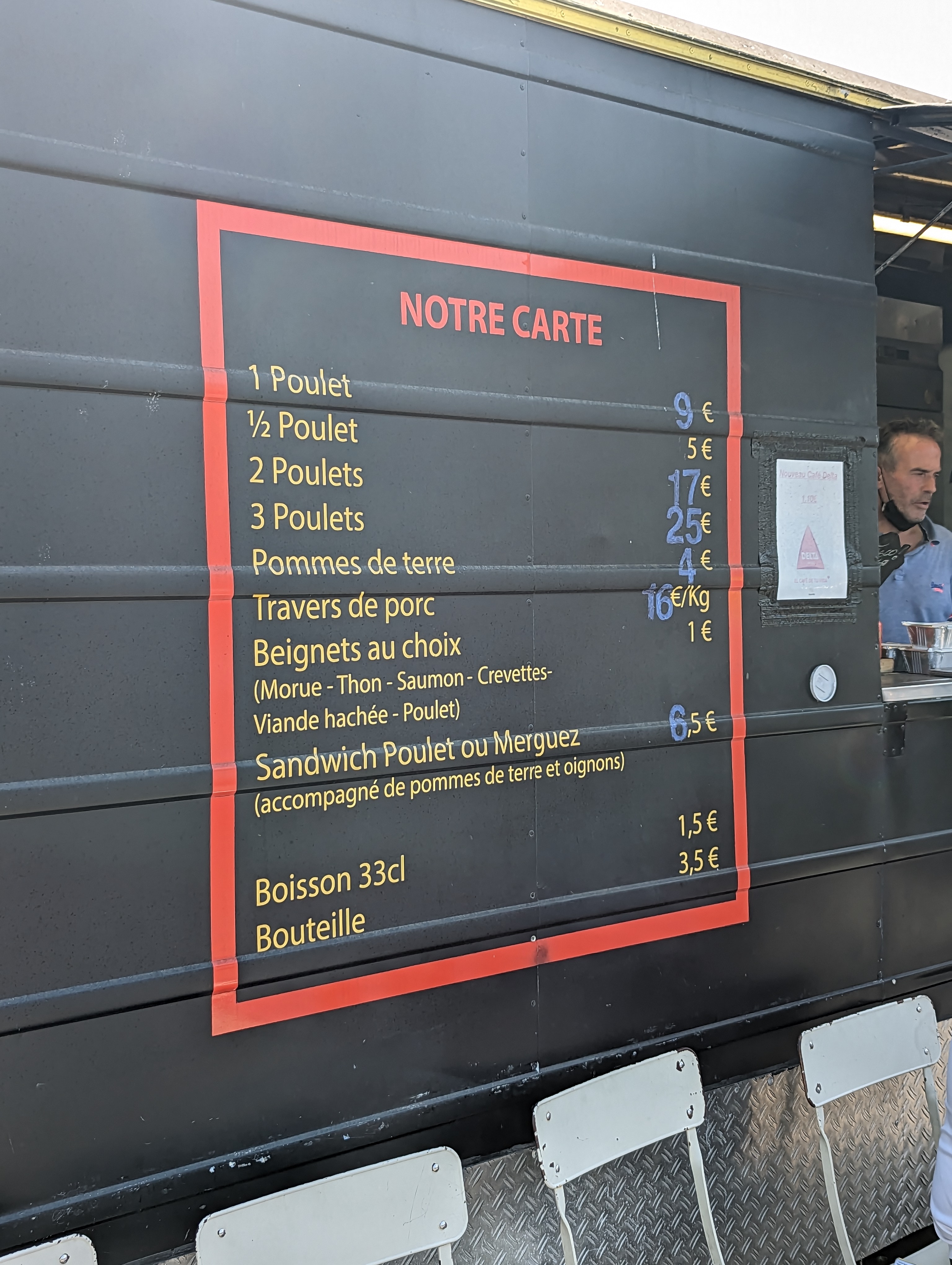 Posté le 13/06/2023 à 10:31"Super foodtruck, les produits sont frais , les poulets et les sandwich sont excellent, bien mariné. Grillade au charbon de bois. Vous pouvez y aller pour manger et y boire une bière fraîche. Dans une ambiance conviviale, le patron est très accueillant et sympathique. Force. Je recommande"