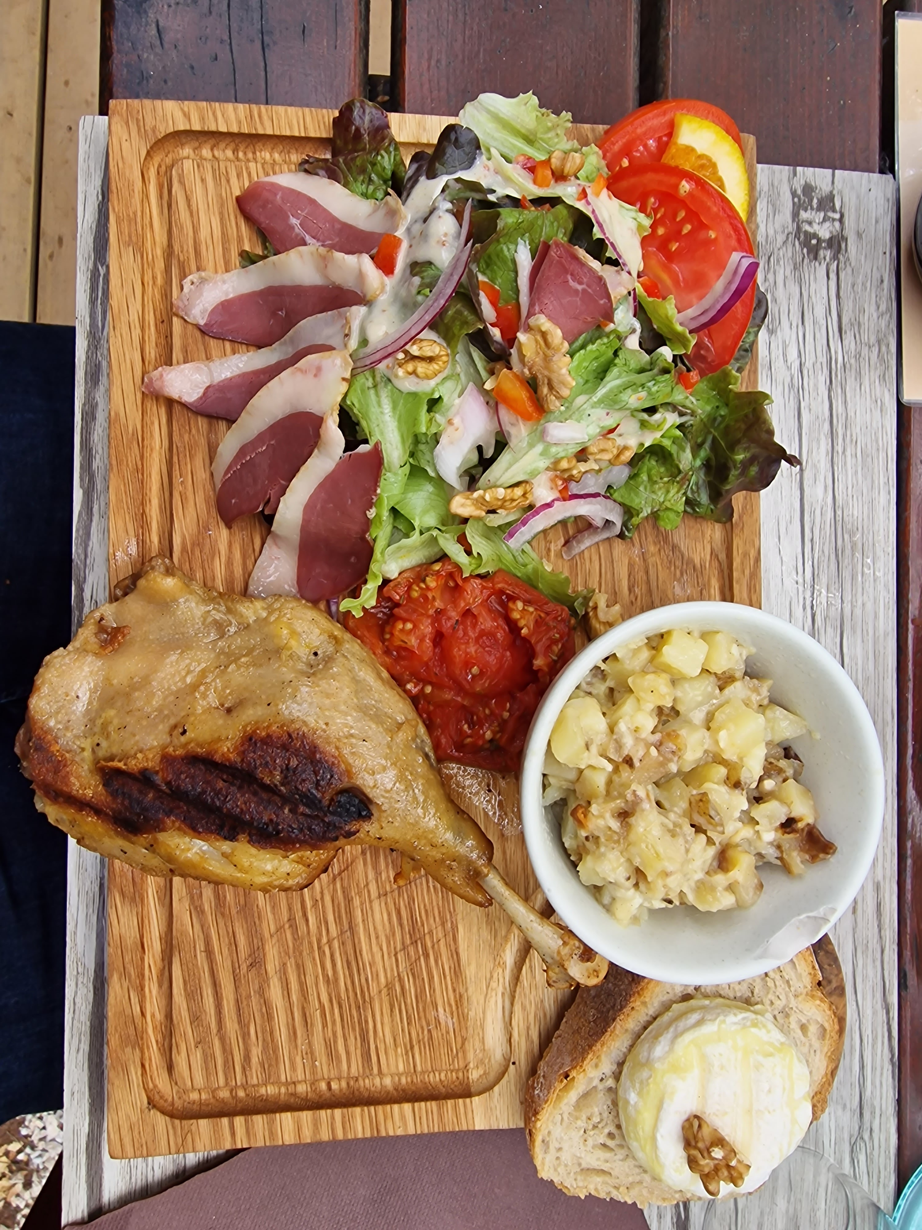 Posté le 20/08/2024 à 16:26"Passage le 18 aout avec des amis (dont un connaissait ce restaurant), un accueil agréable et sympathique, après un petit apéro maison, pour ma part j'ai pris l'assiette de confit de canard (17€ à la carte), je m'attendais pas à cette superbe assiette (voir photo). Si certains se plaignent du temps d'attente, eh oui! il y a du monde et les serveurs ne peuvent pas se couper en 4, pour notre table c'est aller assez vite. Adresse à retenir...."