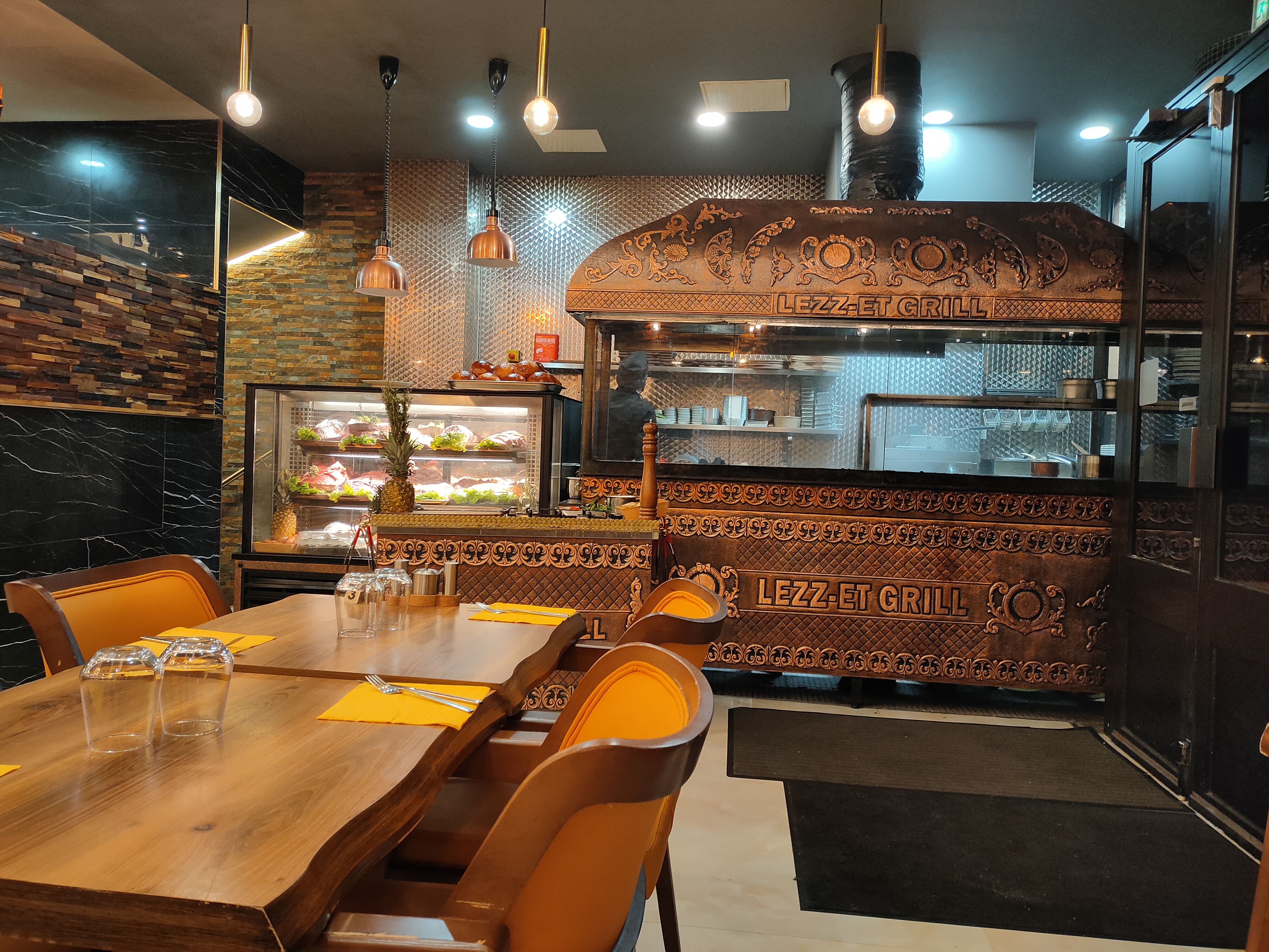 "Le Lezz-Et est un tout nouveau restaurant qui vient d'ouvrir au pied du métro Eglise de Pantin. Le concept : Proposer une large gamme de spécialités principalement turques avec une carte où l'on trouve des entrées, des soupes, des pizzas, des brochettes, des burgers et j'en oublie, ainsi qu'en semaine, un menu du jour à 15,90 € les midis. Premières impressions à chaud (vu que la cuisson des grillades se fait au feu de bois) : Les portions sont très généreuses, la viande est bonne et tendre à souhait, les produits sont frais, les serveurs souriants et très sympas, la grande salle du rez-de-chaussée est joliment décorée et une seconde est prévue pour ouvrie bientôt en sous-sol. Beaucoup de points positifs donc mais quelques axes d'amélioration certainement dus au fait d'essuyer les plâtres : L'entrée à partager pour deux a été servie dans une assiette unique, les grillades et accompagnements sont présentes sur une planche en bois, certes très jolie mais peu pratique pour manger tout ce qu'il y dessus (surtout le petit dôme de blé), les palais délicats peuvent être surpris par le piment très épicé lorsqu'on le confond avec du poivron et que l'on n'est pas prévenu et enfin les haricots verts et épinards d'accompagnement de la carte ne sont pas encore disponibles. Rien de bien grave, surtout que lorsque l'on a les yeux plus gros que le ventre, on nous propose un doggy bag pour rapporter les restes chez-soi. En résumé, nous y reviendrons avec plaisir, en espérant que ces remarques que j'espère constructives pour le patron me permettront de lui décerner les 5 étoiles la prochaine fois ;-)"