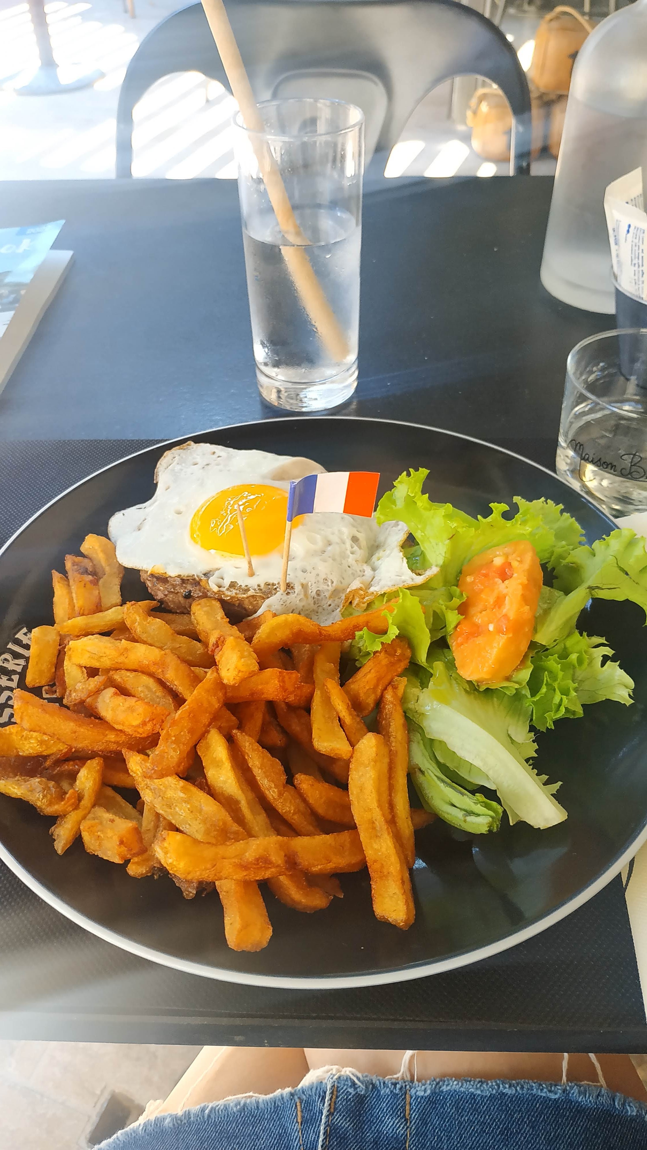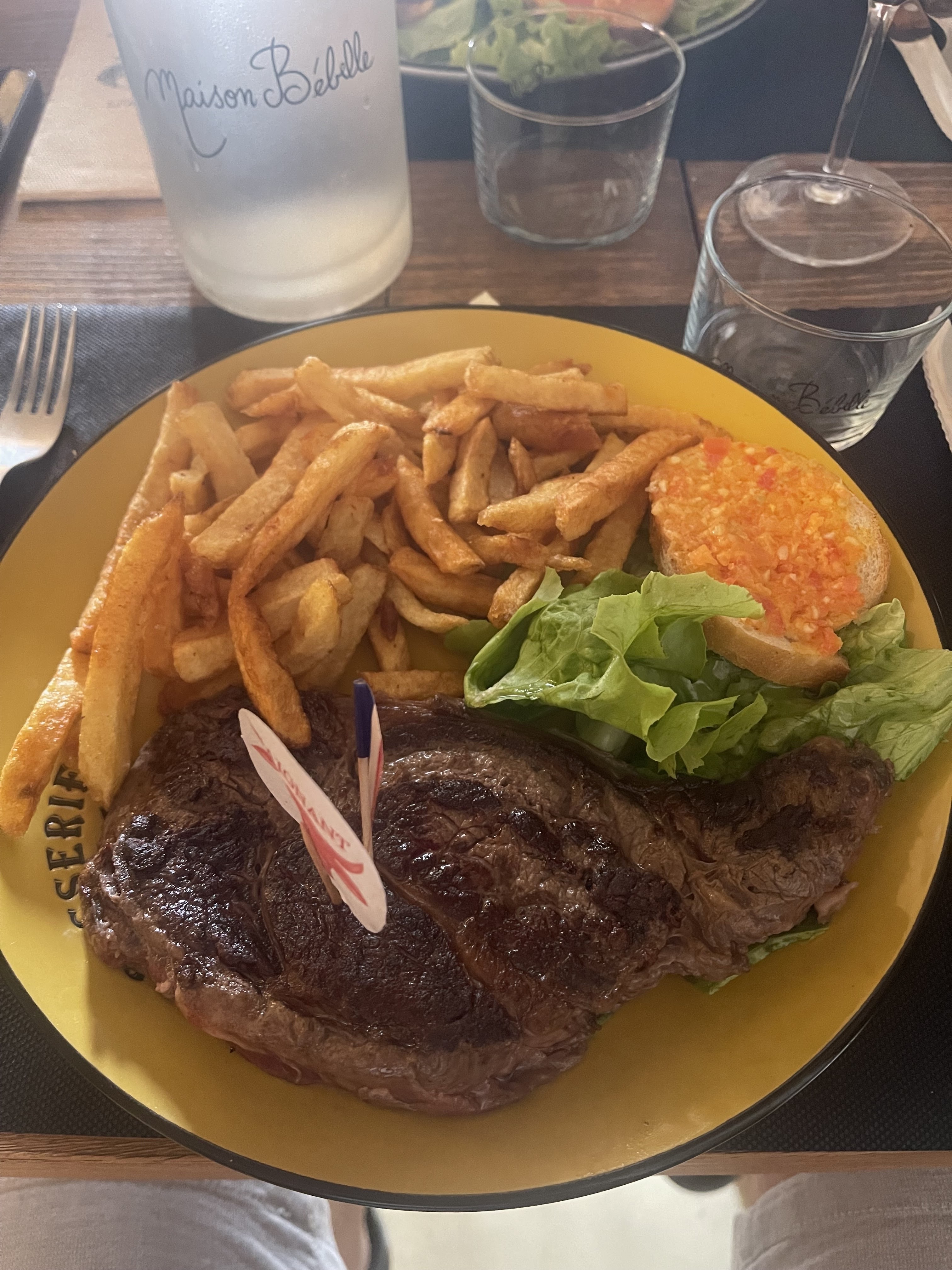 Posté le 06/08/2023 à 14:25"Bonne expérience dans ce restaurant, équipe plutôt souriante, plats de bonne qualité quoi qu'un peu cher, pour ma part un steak simple qui manquait d'assaisonnement accompagné d'une salade qui manquait aussi d'assaisonnement... Frites plutôt bonnes par contre. Rien à dire pour les desserts, tarte aux abricots très bonne! Je recommande tout de même ce restaurant."