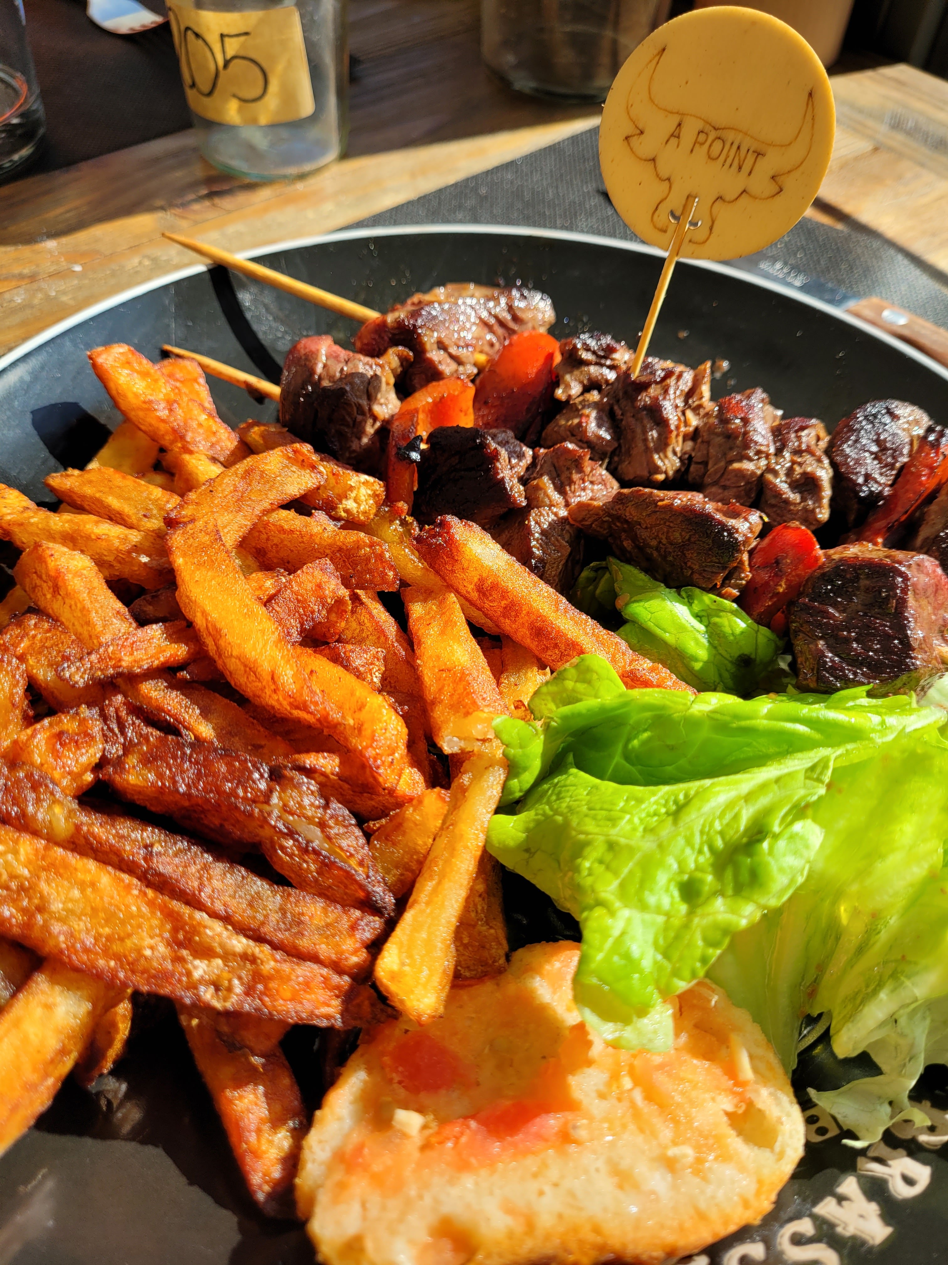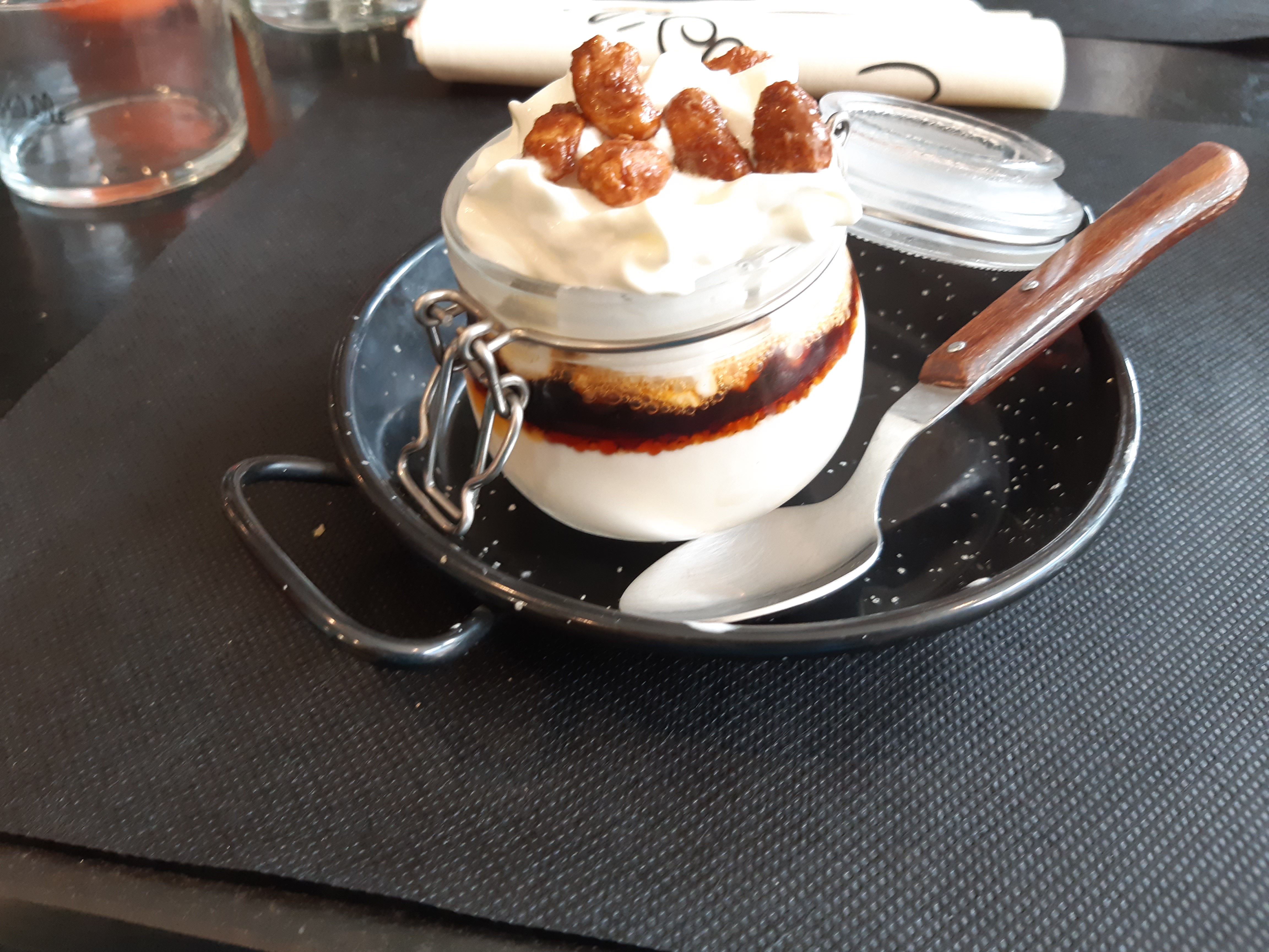 Posté le 30/07/2023 à 17:55"Restaurant sympathique avec terrasse ombragée. Cuisine est bonne mais pas exceptionnelle. La brochette de poulet est bonne mais plutôt simple. Le tartinable est bon mais le taost aurait bien mérité d'être grillé au toaster. Les frites sont décongelés c'est dommage. Le moelleux au chocolat est bon mais la crème anglaise n'est malheureusement pas faite maison. Je recommande ce restaurant."