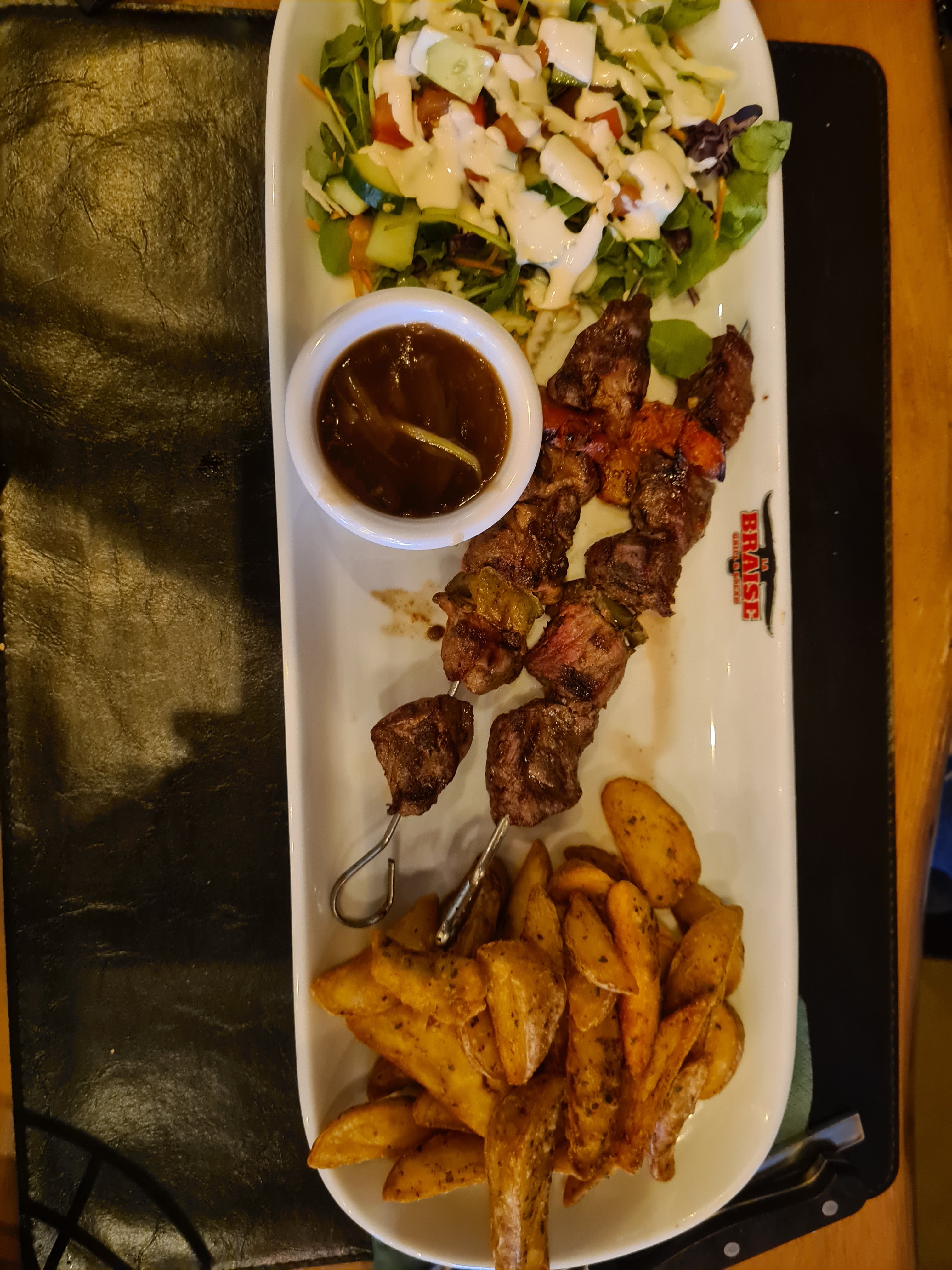 Posté le 02/07/2019 à 20:29"Accueil sympathique, personnels accueillants et professionnels. Dommage que la viande était mal cuite et très difficile à manger. Le boulgour était bon ainsi que la salade."
