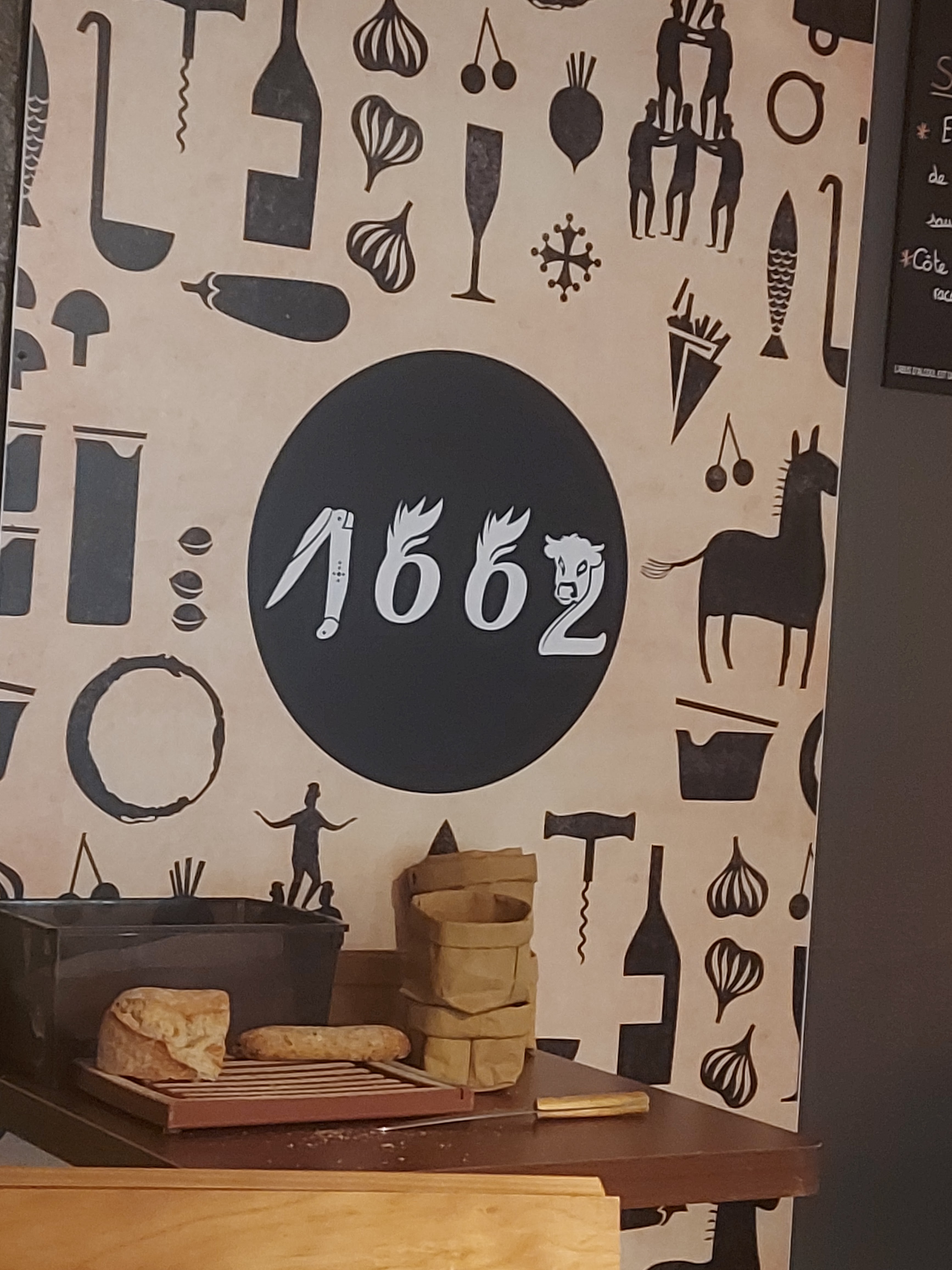 Sortant d'une consultation à l'hôpital vers 12h30, nous avons cherché un restaurant pas trop loin. Nous sommes arrivés devant le 1662. Nombreuses voitures stationnées. Nous sommes allés voir quand même et effectivement, le restaurant est complet car il y a 2 groupes. Mais, si nous voulons patienter 1/4 d'heure, une table de 2 va se libérer. Nous avons attendu et c'est très bien. Le personnel (comptoir, salle et cuisine) est très sympathique. La cuisine très bonne et des tarifs très corrects. De plus, le groupe qui devait manger dans notre salle est venu après notre départ, nous étions donc au calme. C'est une très bonne découverte et nous y retournerons volontiers.